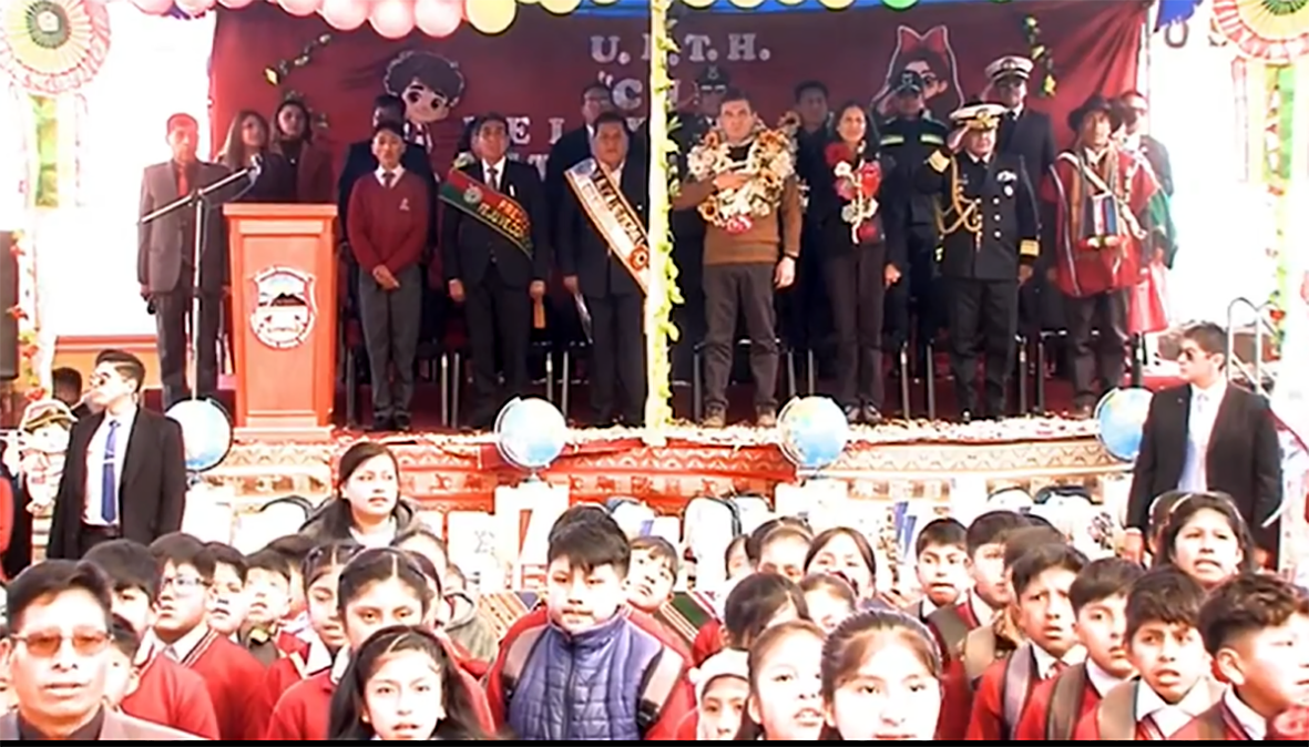 Con un acto solemne, lleno de entusiasmo y simbolismo, el Presidente del Estado Plurinacional de Bolivia, Rodrigo Paz, acompañado de la Ministra de Educación, Beatriz García, inauguró oficialmente la gestión escolar 2026 en la Unidad Educativa “Coronel Félix Rosa Tejada” del municipio de Copacabana. La ceremonia, que contó con la presencia de autoridades educativas, docentes, estudiantes y representantes de la comunidad, marcó el inicio de un año escolar caracterizado por el compromiso con la calidad educativa, la innovación y la formación integral de niñas, niños y jóvenes.